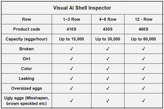 460S (12-Row): Built for high-capacity systems, handling up to 60,000 eggs/hour.