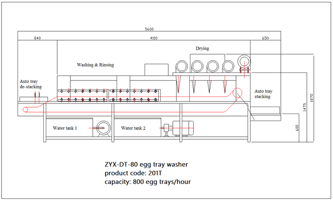 -- After rinsing, water on the plastic egg trays will be blown off by the drying system, if you want even better drying result and efficiency however, you can turn on the heater that comes with the machine. -- After being dried, the plastic egg tray will be stacked automatically at the end, which greatly saves your time, up to 60-70 trays can be stacked per time at the end of the machine. -- The speed of the machine can be adjusted, but 800 trays per hour is recommended.