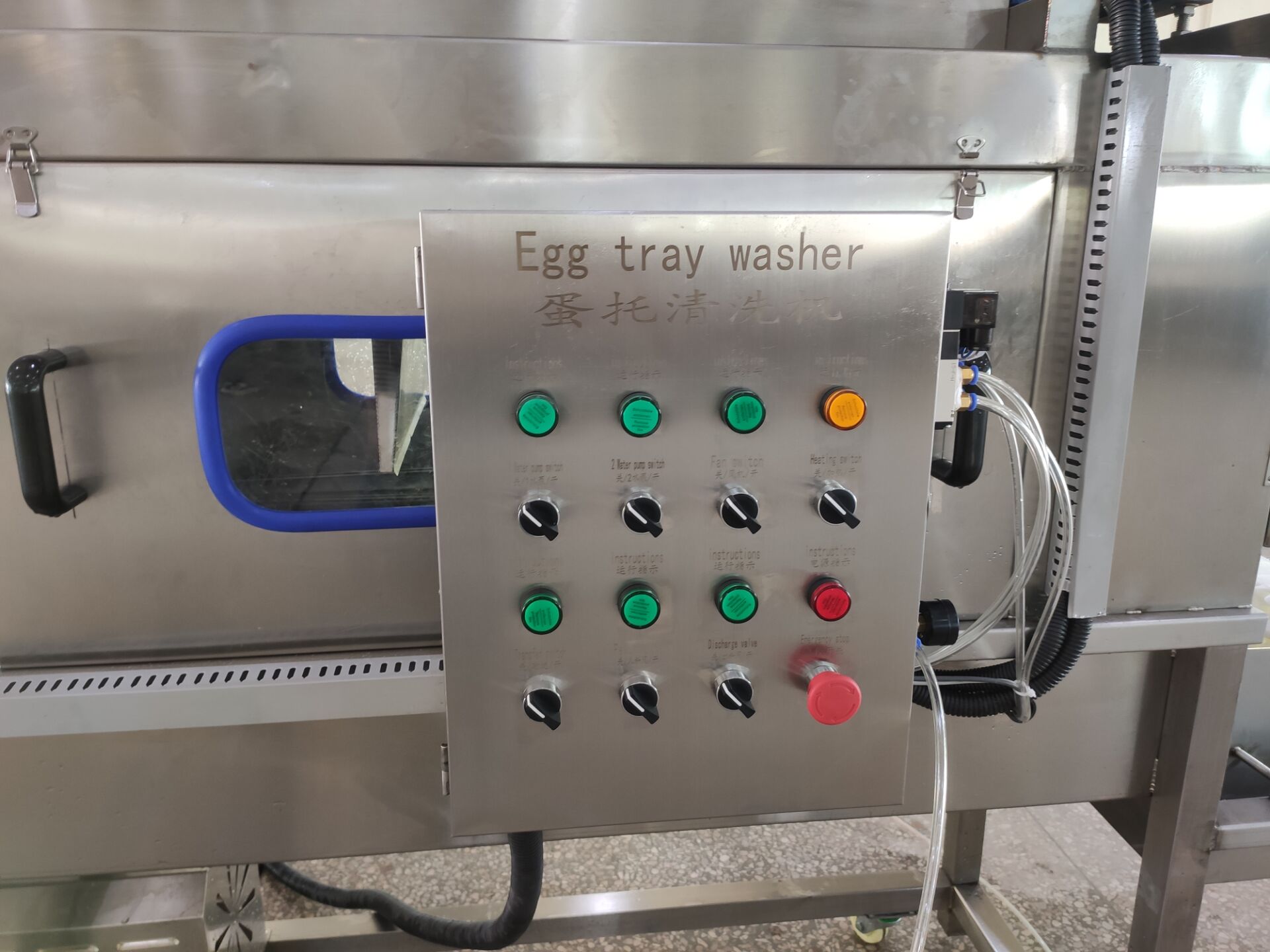 -- Includes automatic egg tray de-stacking, sanitizing, washing & rinsing, drying and automatic egg tray stacking functions all in one machine with a capacity of 800 egg trays/hour. -- This model of plastic egg tray washer is featured with a control panel which you can turn on/off each function separately through the buttons on it.